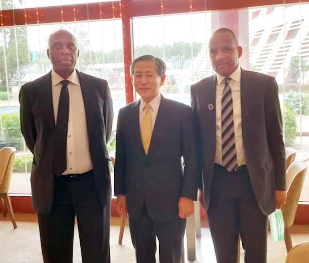 L–R: Honourable Minister of Transportation, Rt. Hon. Chibuike Rotimi Amaechi; New Ambassador, Extraordinary and Plenipotentiary of Japan to Nigeria, Matsunaga Kazuyoshi and Director-General/CEO, Nigerian Maritime Administration and Safety Agency, NIMASA, Dr. Bashir Jamoh