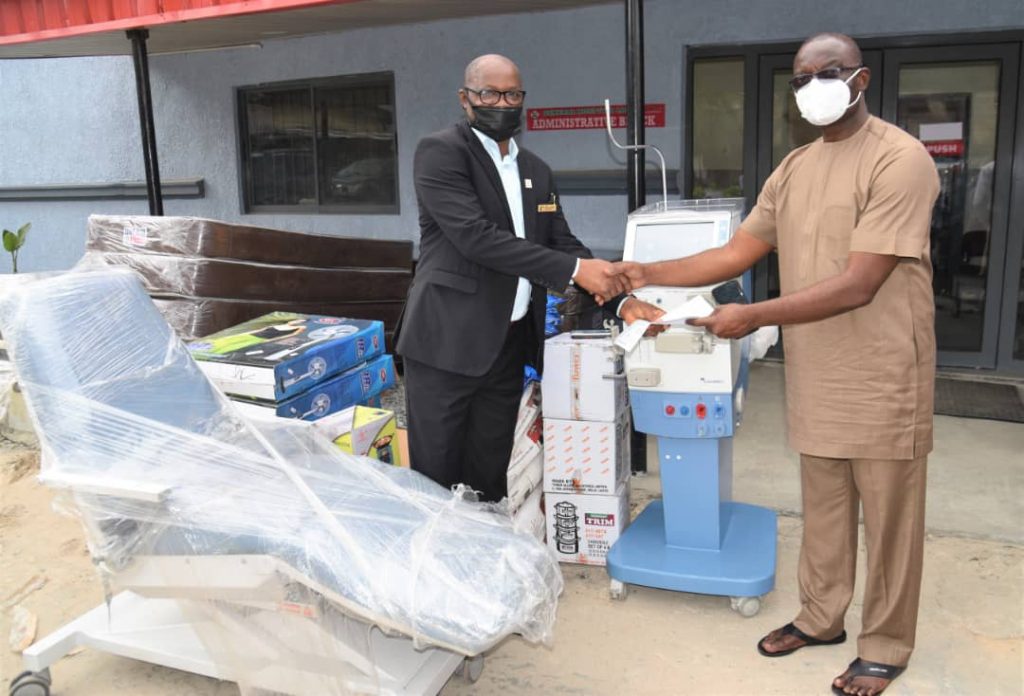 Medical Director/CEO, General Hospital, Marina, Lagos receving Dialysis Machine and other Hospital equipment from Hon. Emmanuel Jime, Executive Secretary/CEO Nigerian Shippers’ Council