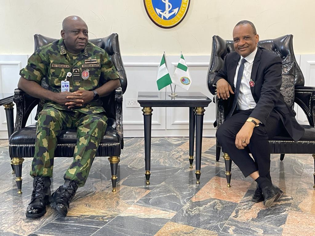 Director General, Nigerian Maritime Administration and Safety Agency, NIMASA, Dr Bashir Jamoh, OFR and the Chief of Naval Staff, Vice Admiral Emmanuel Ogala during a visit by the NIMASA DG to the Naval headquarters in Abuja
